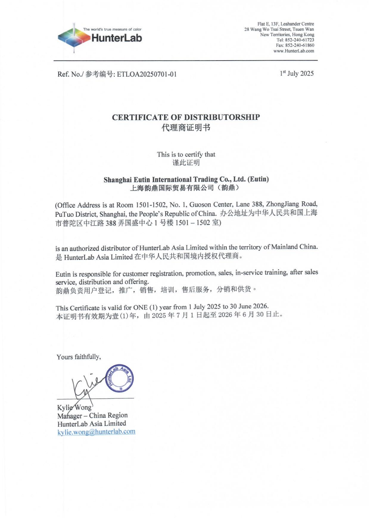 上海韵鼎国际获HunterLab官方一级授权,共筑色彩测量新生态